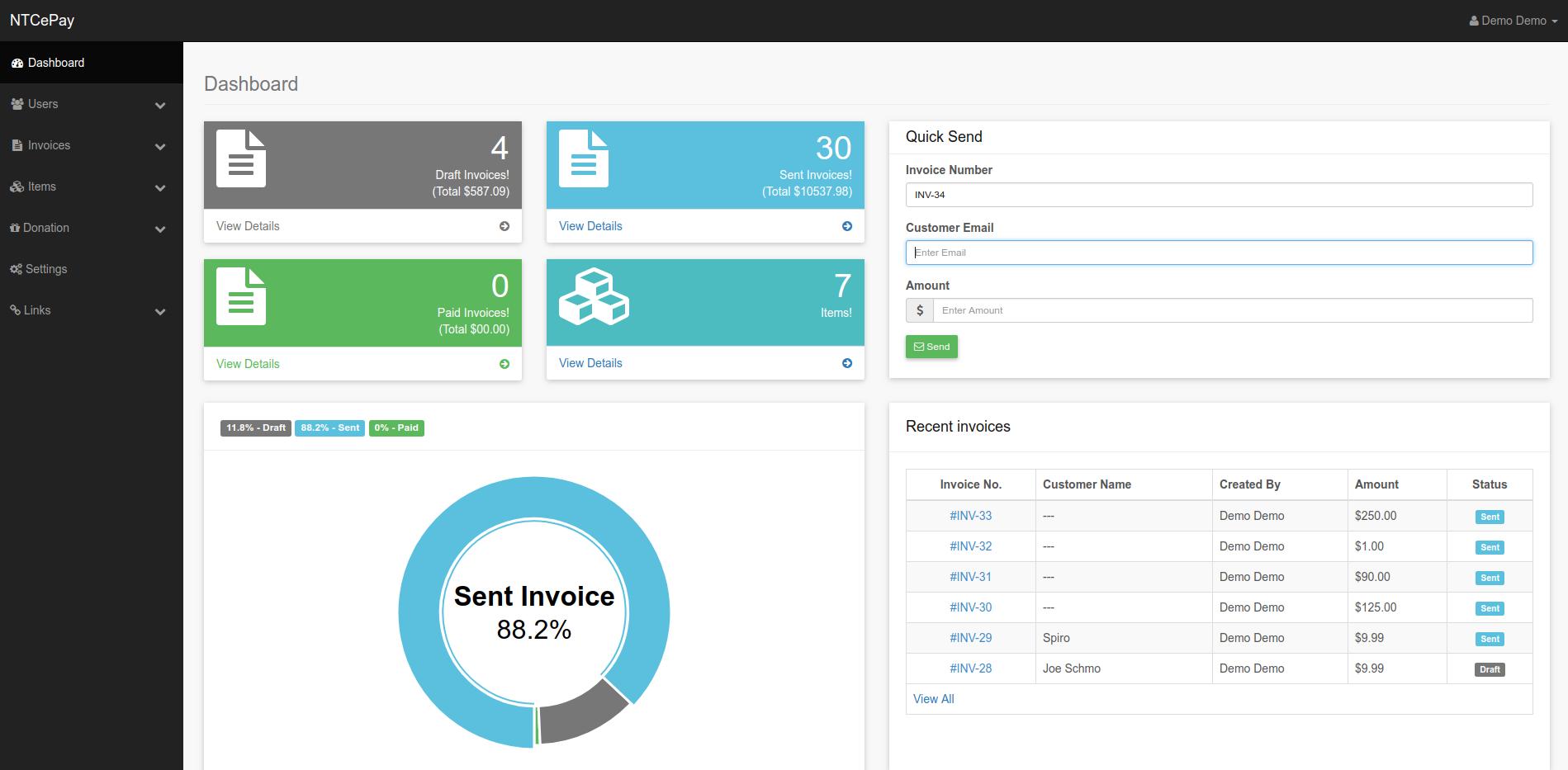 Get it Now!With as little as a dollar amount and an e-mail address you can send your customer a link to an invoice and a secure payment link.