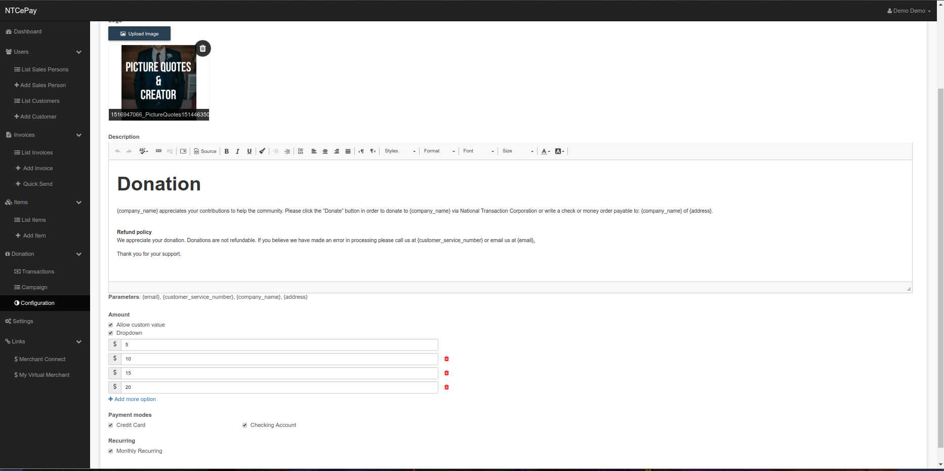 Simply fill out the dollar amount and e-mail your customers an invoice and link for payment.