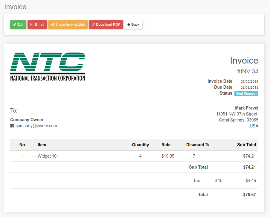 Add inventory items and create line itemed invoices with discounts and sales tax and so much more.
